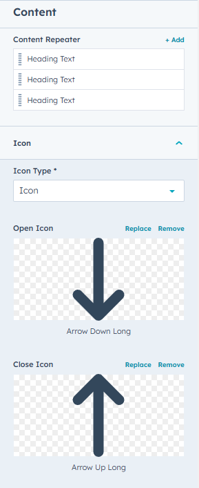 - Content- this group of fields is responsible for content of the module